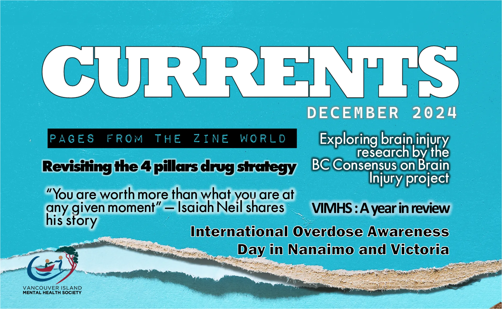 A few pages from the zine world…Exploring brain injury research…Revisiting the 4 pillars drug strategy…Three sisters share memories, perspectives from growing up with a loved one with schizophrenia…International Overdose Awareness Day in Nanaimo and Victoria…A look at our work over the past year…and more…